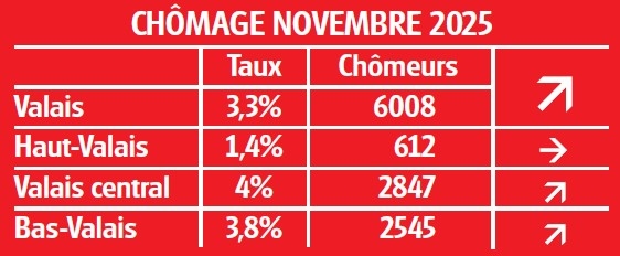 Enfin, d’après les prévisions du Service de l’industrie, du commerce et du travail, le taux de chômage valaisan pour 2025 devrait se situer à 3,1% (contre 2,7% en 2024).